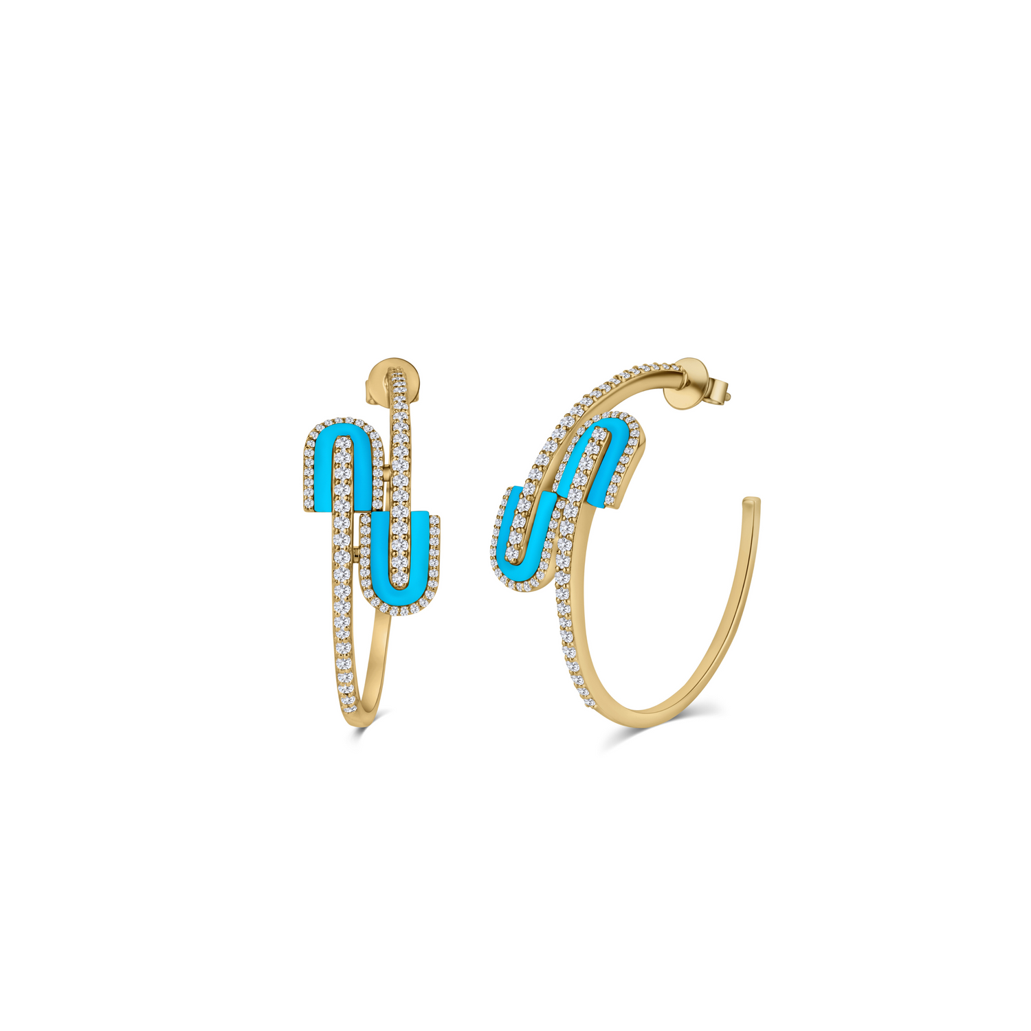 The U earrings elegantly wrap the ears shaping an innovative curved look. A tandem of the collection’s signature U-shaped curves overlap and drive this radiating hoop design, celebrating a circle of fulfilled journeys.
